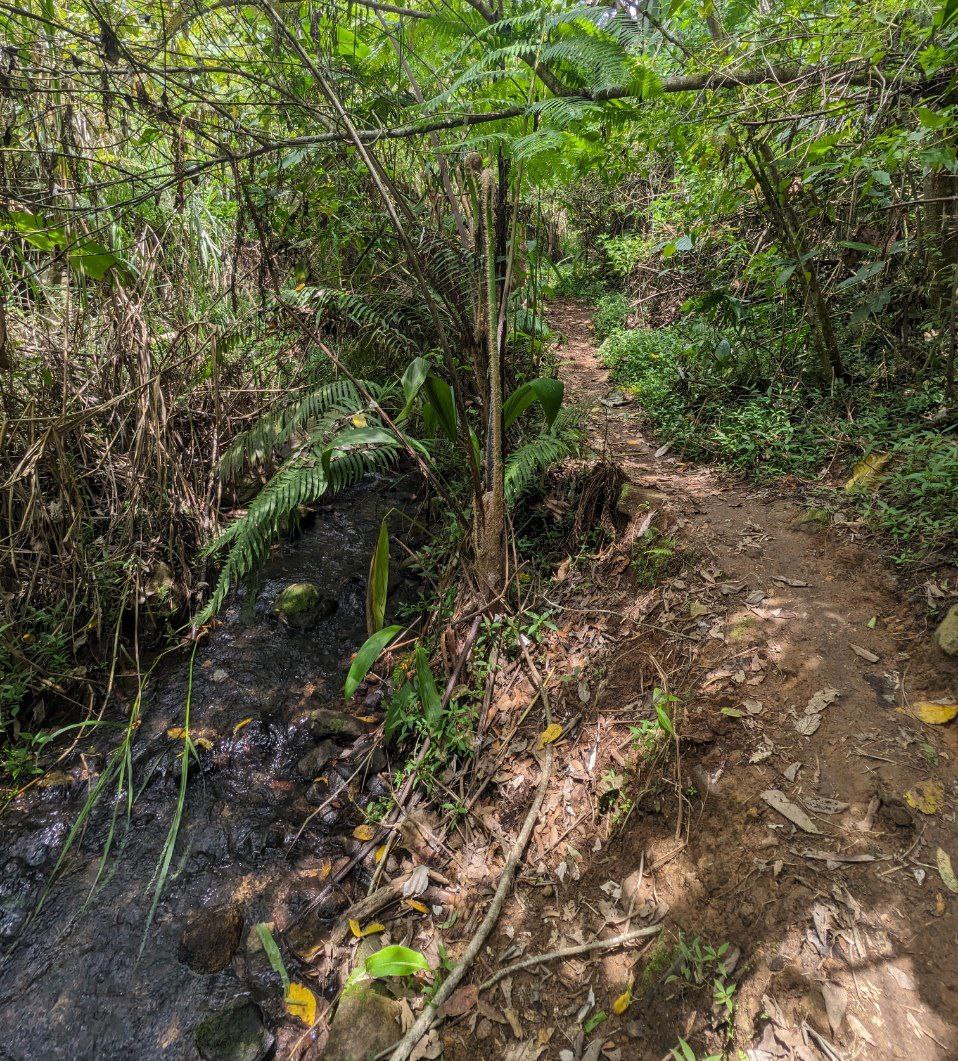 Setelah melewati jalan berbatu atau makadam, dilanjut masuk ke area hutan lebat dengan menyebrangi sungai kecil pertanda pintu rimba. Dari sini jalan mulai menanjak dikelilingi dengan pohon yang menjulang tinggi.