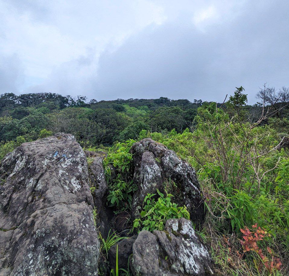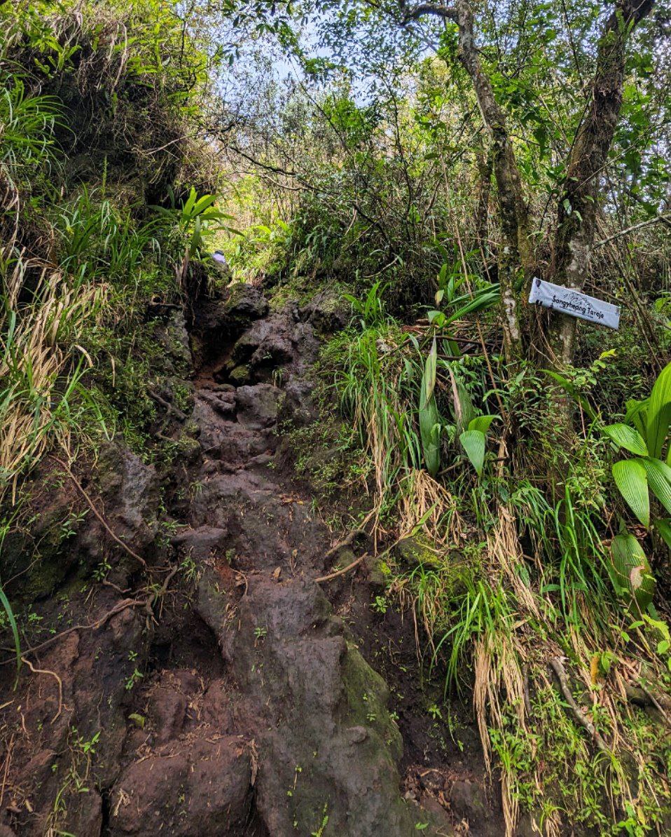 Setelah Pos 4 kita akan melewati 3 area bebatuan yang harus hati-hati karena cukup terjal dan licin, ketiga area ini dinamakan area Sanghyang. Untuk melewatinya kita harus bergantian dengan pendaki lain baik yang akan naik maupun turun karena jalurnya yang sempit dan terjal.