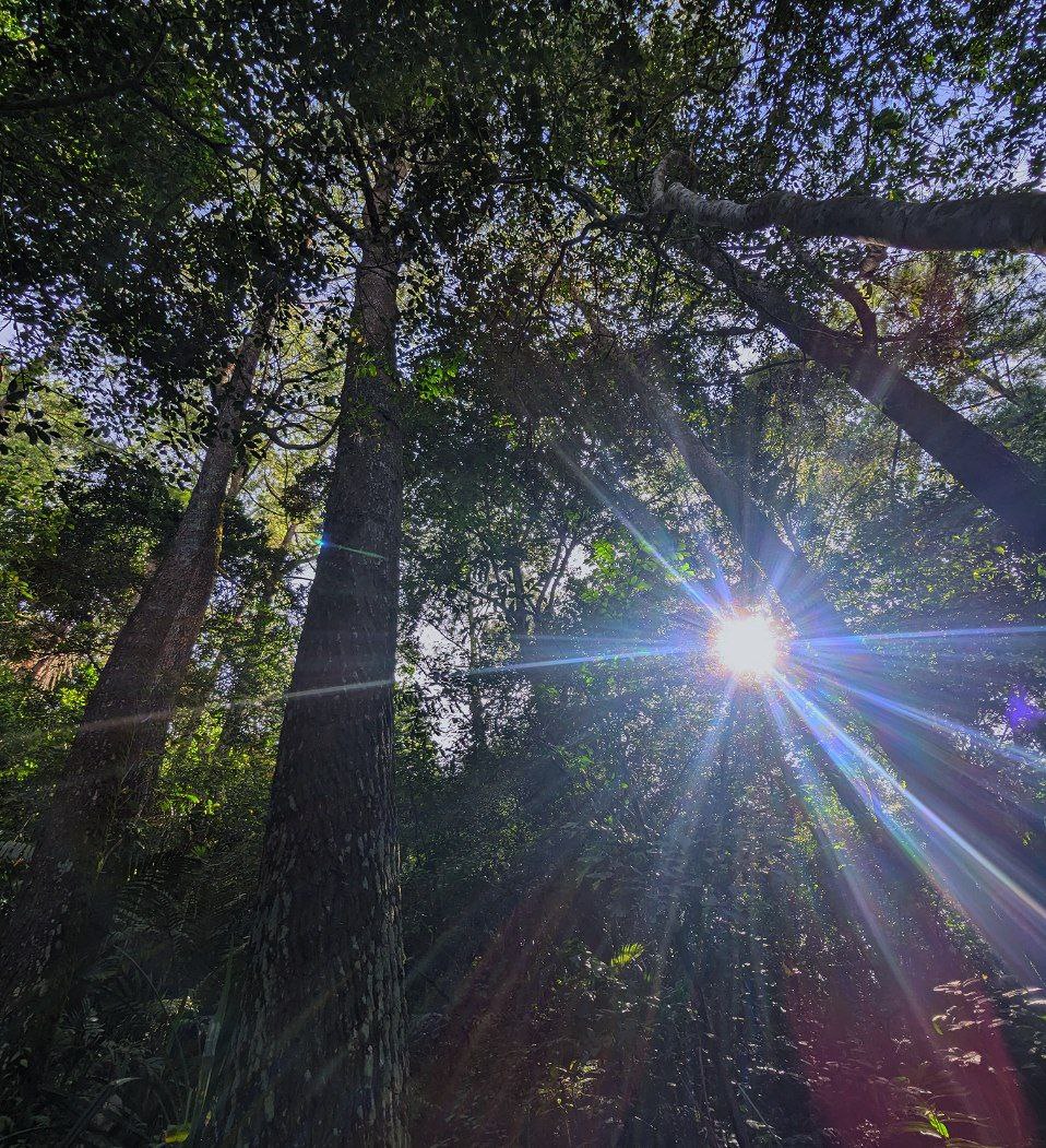 Sesekali saya berhenti istirahat untuk mengatur nafas dan mengurangi heart rate jika sudah mulai tinggi. Udara segar pagi hari ditambah sinar matahari yang sedikit-sedikit masuk hutan membuat tentram suasana. Sesekali terdengar juga kicauan burung dan hewan-hewan hutan.