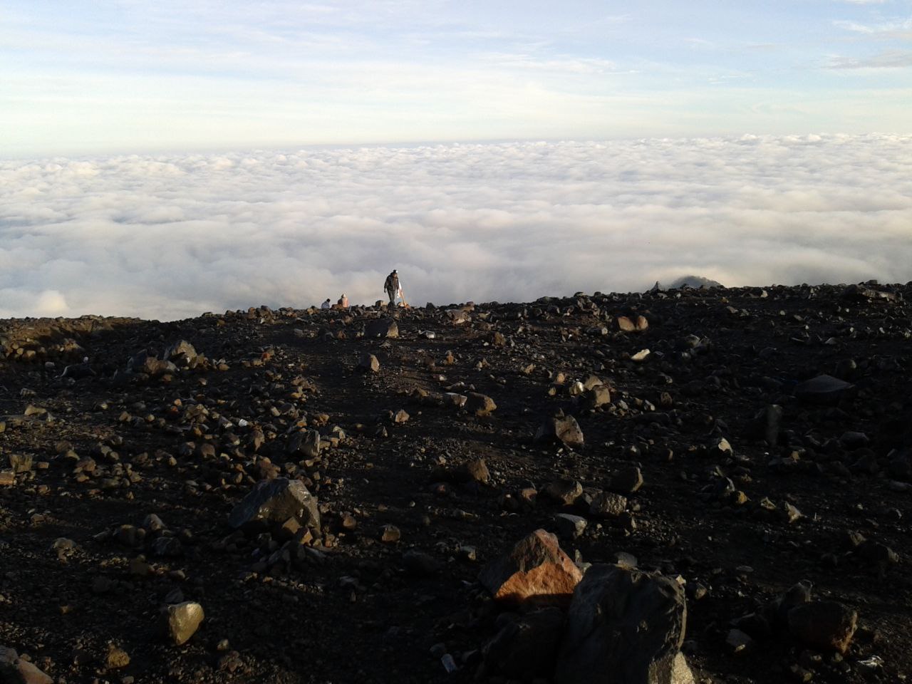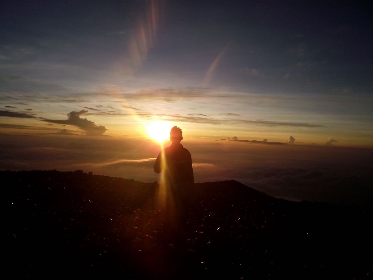 Haru dan bahagia menyelimuti perasaan saat berhasil sampai puncak. Kami beristirahat sembari mendokumentasikan suasana pagi yang menakjubkan. Matahari muncul perlahan dengan sinarnya yang indah. Lautan awan bak ombak lautan menjadi pemandangan dari atas puncak ini. Selain itu kawah yang setiap beberapa menit erupsi menyemburkan asap yang membumbung tinggi menjadi 'pertunjukkan' yang ditunggu oleh para pendaki untuk didokumentasikan.